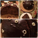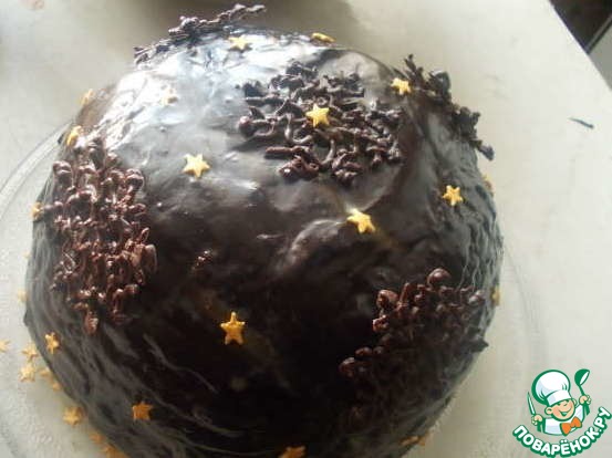 В оставшийся шоколад я добавила сливки и пудру, залила тортик сверху. Украсила и снежинками и кондитерской посыпкой.