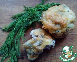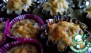 Включаем духовку греться до 200градусов. Готовим формочки. Металлические формы я предварительно на всякий случай смазала оливковым маслом. Раскладываем тесто по формам не до краев. Трем сыр на мелкой терке, что бы получилась стружка и посыпаем формочки. Отправляем в духовку на 10 минут при 200 градусов, потом снижаем до 180 и оставляем на 30 минут.