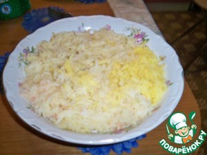 Следующий шаг как раз относится к "необычности этого рецепта", вместо слоя резанной селедки и лука, мы поступаем по другому! Селедку перекручиваем на мясорубке, чередуя кусочек селедки, кусочек луковицы и т. д.