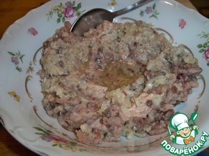 Получается вот такая масса! добавляем туда ложку растительного масла и тщательно перемешиваем!