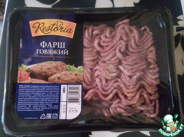 - Говядина (фарш) — 400 г