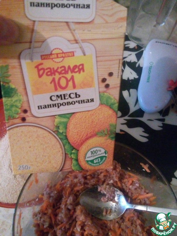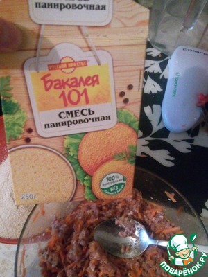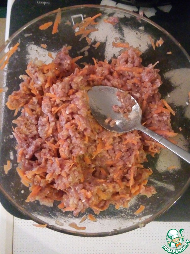 Добавила специи, 3 маленьких яйца, 1 чайную ложку соли, морковь и лук.