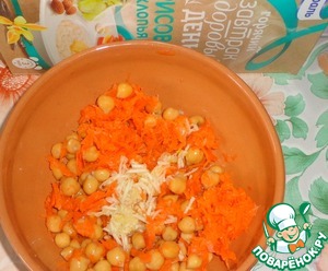 На мелкой терке натереть морковь и обжарить на растительном масле.