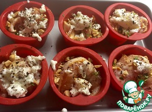 • Посыпать сухим чесноком и арахисом. Добавить в каждую форму немного тимьяна.