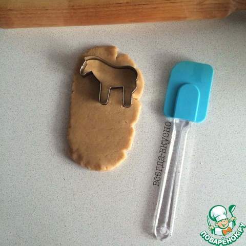 Раскатайте тесто скалкой или разомните руками, на стол не нужно сыпать муку т. к. в тесте есть масло и оно не прилипнет. Делайте фигурки и выкладывайте на лист при помощи лопатки или аккуратно руками т. к. тесто хрупкое