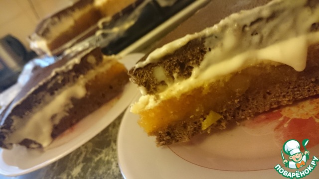 Очень вкусный шоколадно-бисквитный торт с тыквенно-яблочной начинкой. Я научилась готовить его в Польше. Советую всем попробовать!