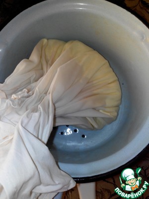 Сначала приготовим крема. Для того, чтобы крем не получился жидкий я всегда использую сметану жирностью 20% или больше и оставляю её на ночь в холодильнике в "подвешанном" состоянии, чтобы стекла сыворотка.