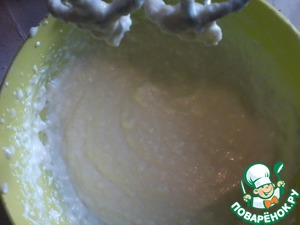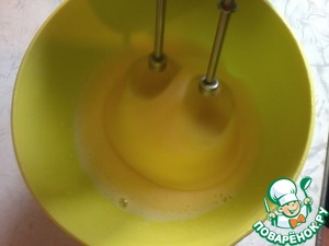 Яйца взбить миксером на минимальной скорости, добавив щепотку соли. Постепенно добавляем сахар до образования воздушной пены.