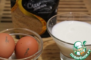 Яйца взбить с половиной сахара, добавить муку, размешать. влить 100 мл. молока и размешать
