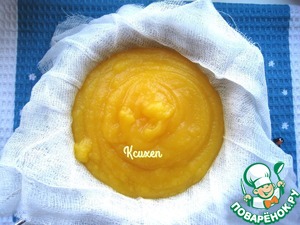 Для этого пюре откидываем на сито, выстеленное несколькими слоями марли и оставляем в таком состоянии на 1-2 часа.