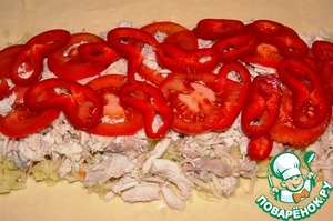 Рецепт «Плетенка из слоеного теста с курицей и овощами»: