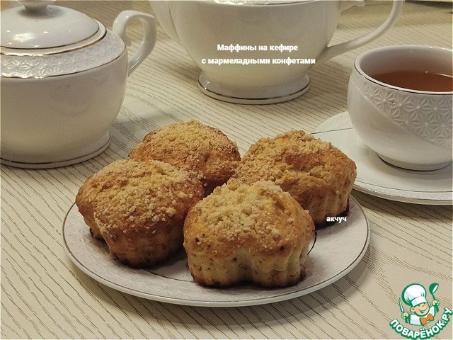 Рецепт «Маффины на кефире с мармеладными конфетами»: