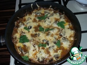 Посыпаем данное блюдо натертым сыром и отправляем в разогретую духовку до 180 градусов еще на 10 минут.