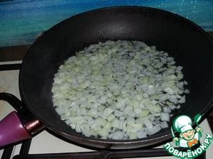 Пока обжаривается лук, нарезаем также мелкими кубиками перец и выкладываем на сковородку.