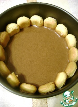 - Печенье (бисквитное савоярди -палочками, количество зависит от объема формы.) — 1 пач.