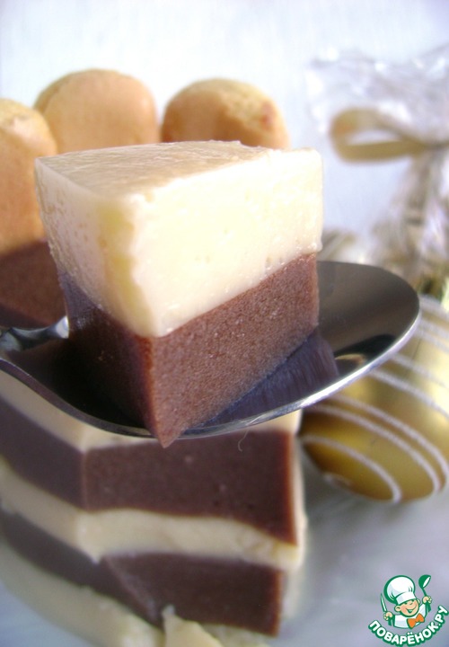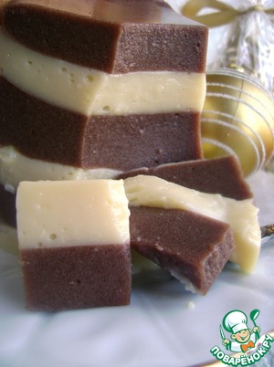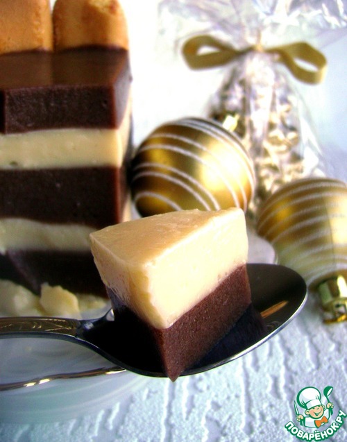 Хочу поздравить всех с Новым годом и пожелать, чтобы в жизни светлых полосок было намного больше!!! Нежный, ароматный, контрастный по цвету, вкусу и фактуре, этот торт-десерт украсит любой стол. Сливочное желе не уступает птичьему молоку и даже еще вкуснее. А шоколадное имеет глубокий бархатистый вкус и насыщенный аромат. Все вместе-особенно если вы подадите к торту чашку горячего крепкого кофе-доставит приятные минуты чистого наслаждения сменой фактур, температур и вкусов.