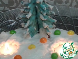 Готовую ёлочку покрываем айсингом. У меня с добавлением пищевого красителя. Даём подсохнуть. Я не стану делать МК по айсингу. И на Поварёнке и на просторах инета есть масса рецептов и прекрасных видео по его приготовлению.