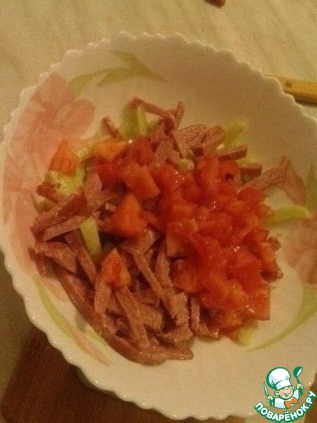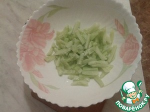 Режем соломкой, кладем в салатницу
