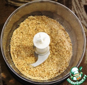 Обсыпать бока торта ореховой крошкой и украсить грецким орехом