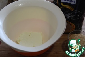 В 125 гр сливочного масла всыпать сахар и очень хорошо взбить миксером