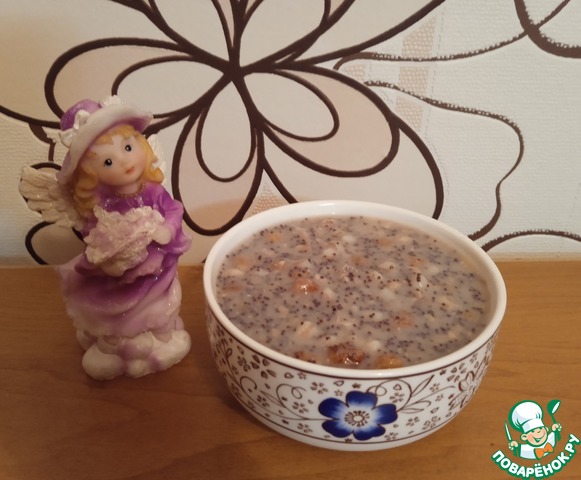 А теперь я многих удивлю еще раз. Большинство мак для кутьи запаривают кипятком. Я тоже так раньше делала. Но правильно его предварительно проварить. Это прием дает возможность получить из мака больше молочка для придания кутьи нежности. Заливаем мак стаканом воды, доводим до кипения и варим 30 минут на медленном огне.