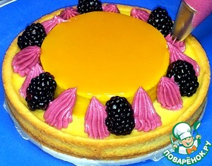 Крем положила в кондитерский мешок с насадкой звёздочка и отсадила с двух сторон ежевики.