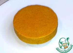 Вылила в форму для запекания диаметром 10 см (или можно в форму, которая есть, а потом вырезать нужный диаметр).