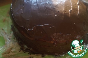 Готовый ганаш нанести на торт, хорошо промазав верх и бока.