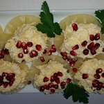 Выложить на ананас по 1ст. л. начинки. Вкусная закуска готова. Угощайтесь поварята!!!