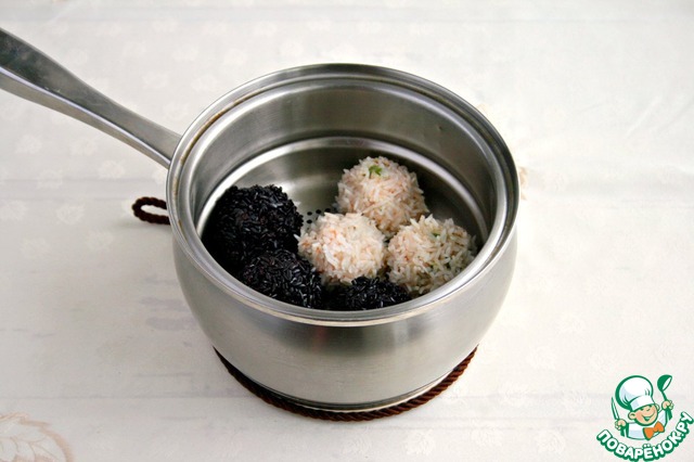 Рецепт «Рисовые шарики с морепродуктами "Белое-черное"»: