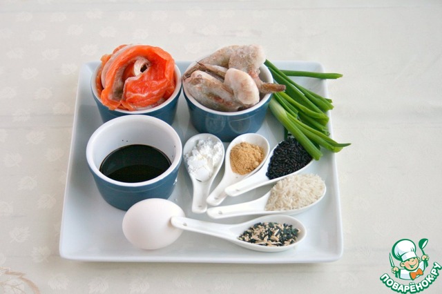 Ингредиенты для «Рисовые шарики с морепродуктами "Белое-черное"»: