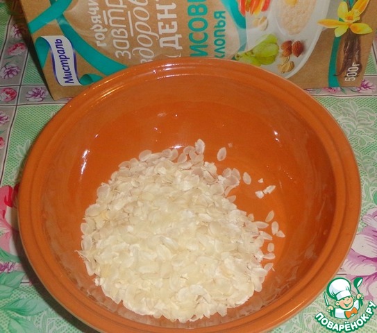 Хлопья залить кипятком и оставить на 3 минуты. Из хлопьев мы будем делать прослойку, дальше увидите каким образом. -