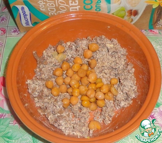 Мясной фарш (у меня он приготовлен из полу отварного мяса) посолить и поперчить по вкусу, добавить по вкусу и кориандр.