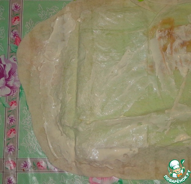 К столу подается рулет в горячем виде, тогда лаваш будет хрустеть.