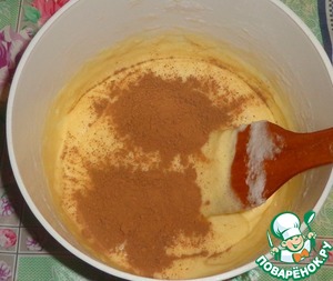 Добавить сахар и 1 пакет. ванильного сахара. Взбить.