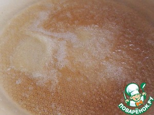 На отдельной сковороде растопить сливочное масло, добавить чайную ложку сахара, подождать, пока сахар начнет карамелизоваться.