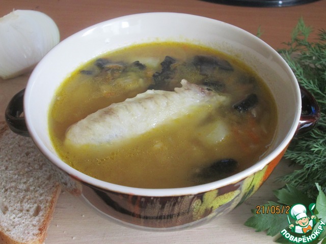 Рецепт «Гороховый суп с куриными крылышками и шампиньонами»: