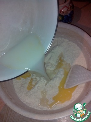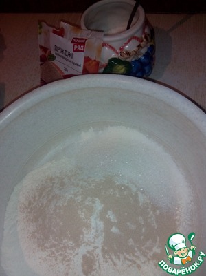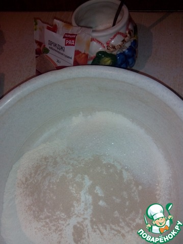 В миске смешиваем муку (просеять), дрожжи, соль, сахар.
