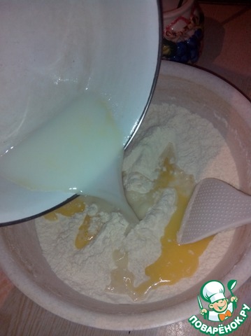 Перемешать и замесить тесто (оно должно быть нежное и эластичное, но не прилипать к рукам). Накрыть полотенцем и оставить в теплом месте на 1-1,5 часа (я ставлю в электродуховку и включаю на 30-40градусов, так тесто лучше подходит)