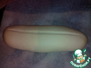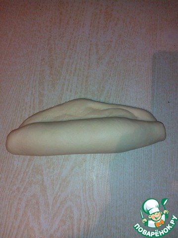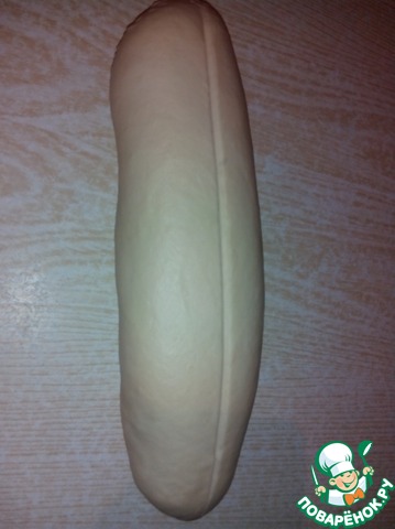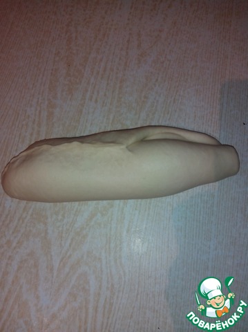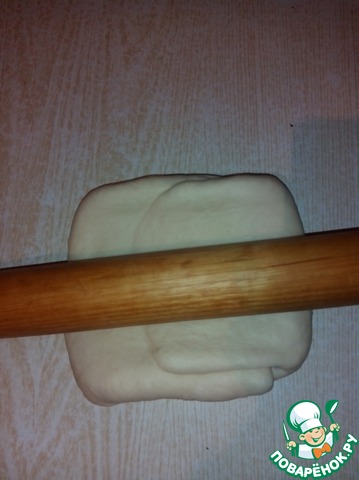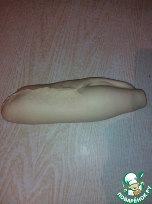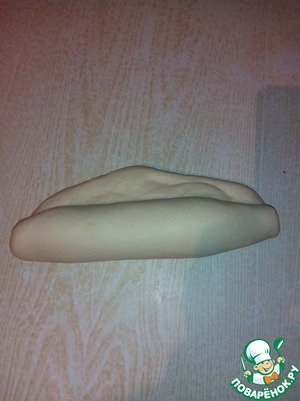 Раскатываем еще раз в небольшой прямоугольник (где-то 20-23см в длину).