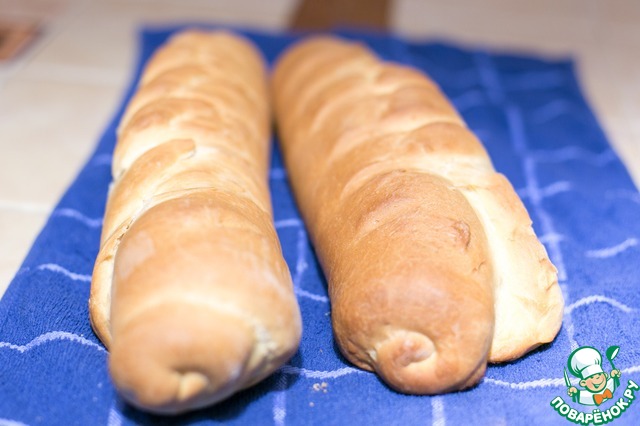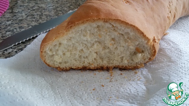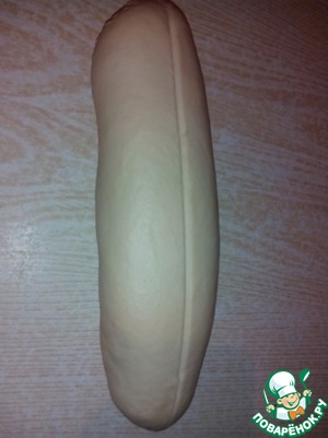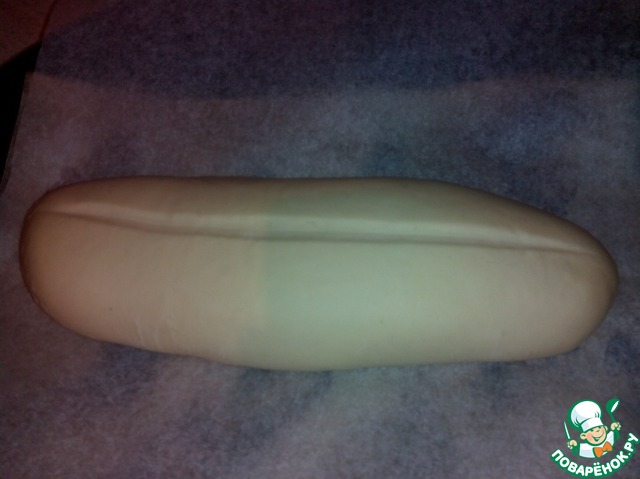Делаем острым ножом неглубокий надрез вдоль всего батона.