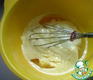 Добавить к ним сметану, размягченный маргарин и растительное масло.