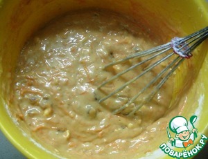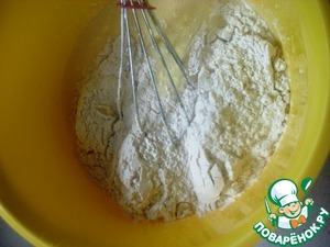 Всыпать примерно треть мучной смеси, хорошо перемешать.