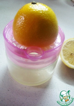 Пока печется пирог приготовим заливку. Из половинки лимона выдавить сок.