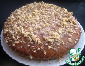 Выливаем лимонную заливку на пирог, сверху украшаем по желанию. Я присыпала измельченными в блендере грецкими орехами.
