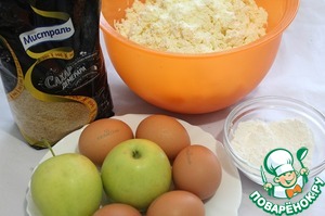 Яблоки очистить от кожуры и семечек и натереть на мелкой терке в пюре - если творог жидковат, то пропустить этот пункт