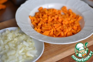 Фарш, тыкву с луком, орехи, изюм, соль смешать.