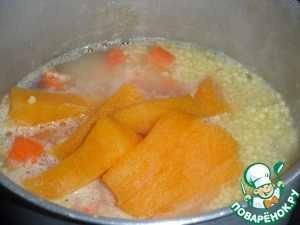 Морковь и тыкву добавляем к пшену. Варим до готовности.