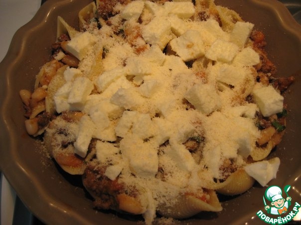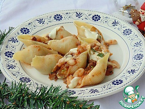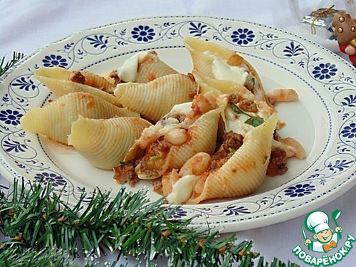 Рецепт «Конкильони, фаршированные мясным рагу с фасолью»: