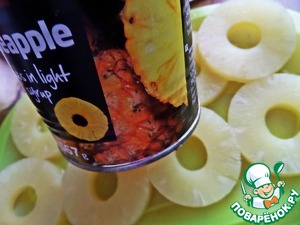 Свежий ананас чистим и делим на кольца.